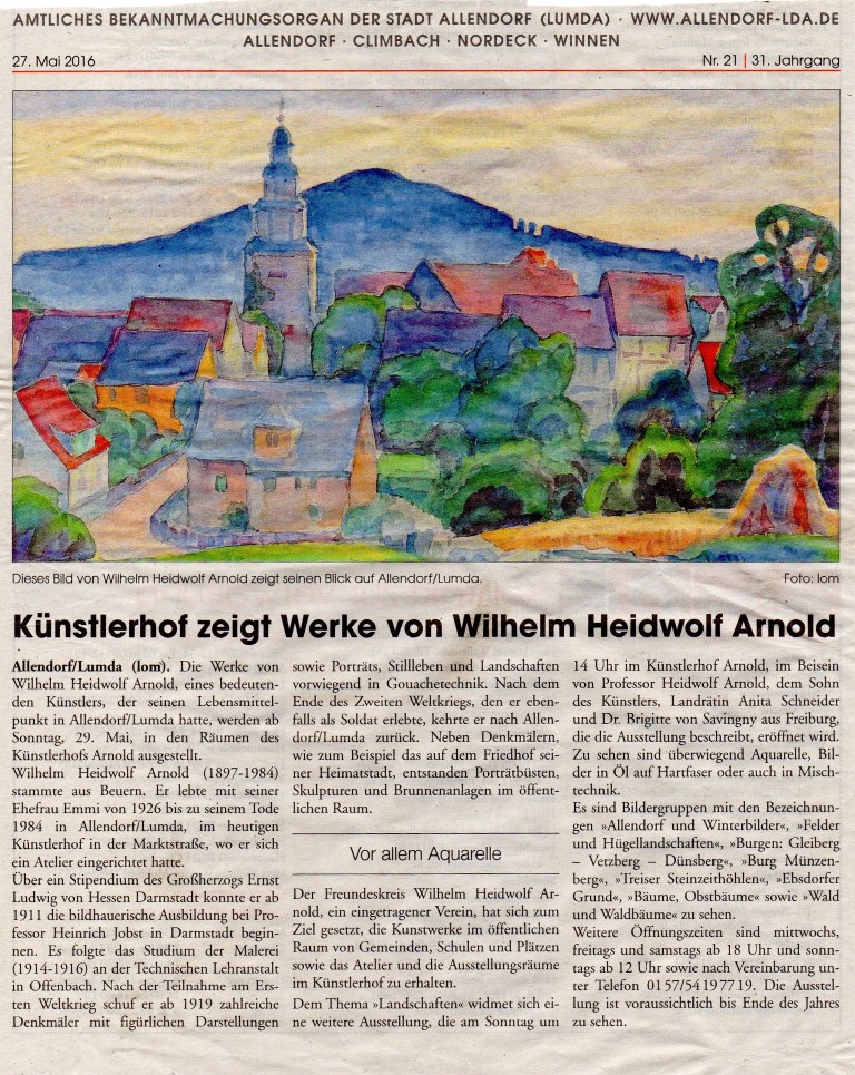 Austellung im Künstlerhof zeigt Spätwerk des Allendorfers Bildhauers und Malers W.H. Arnold [1.616 KB]