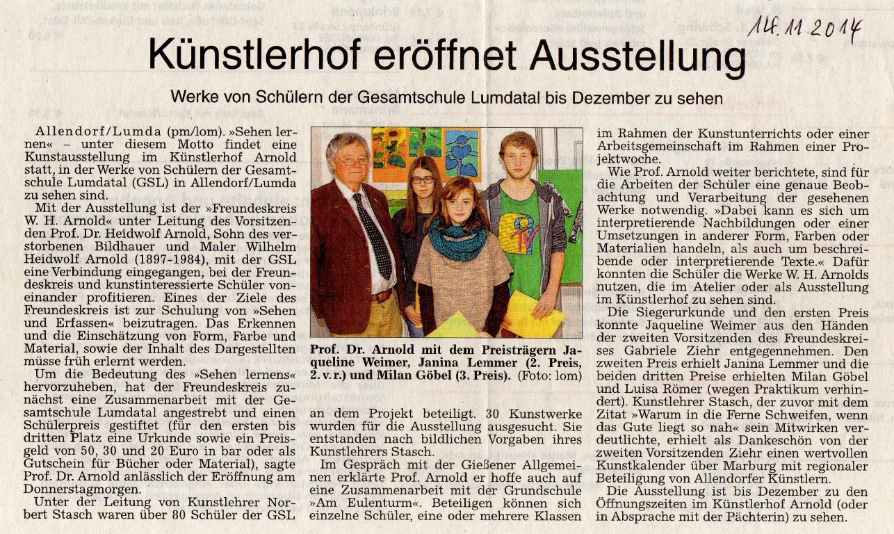 Interpretation einer Plastik von W.H. Arnold im neuen Landgraf-Ludwigs-Gymnasium und Atelierbesuch in Allendorf.