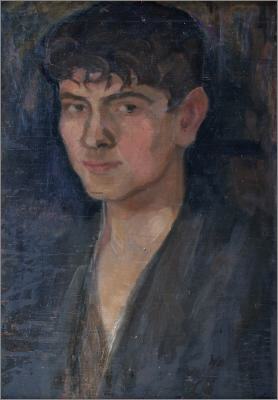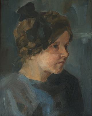 Mädchen mit schwarzer Schleife, Öl auf Holz, 1914