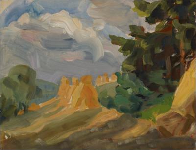 Landschaft mit Strohgarben, Gouache, Papier, 1915