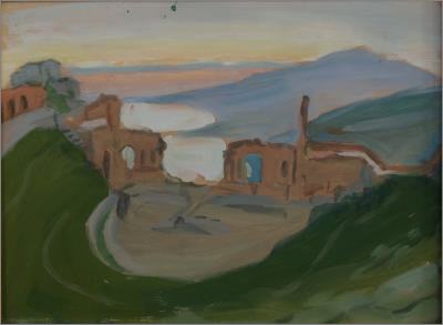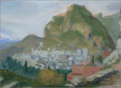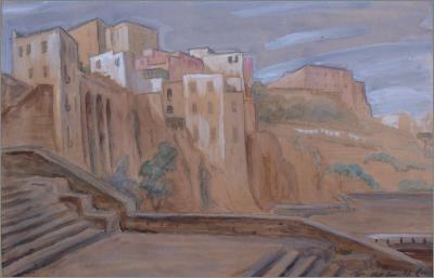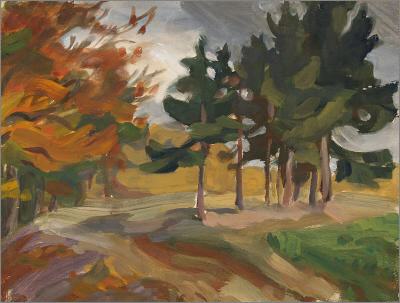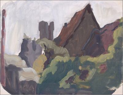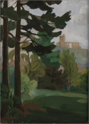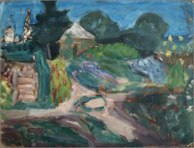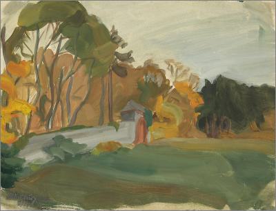 Bäume mit Mauer, Gouache auf Papier, 1915