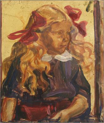 Mädchen mit roten Schleifen, Öl auf Karton, 1915