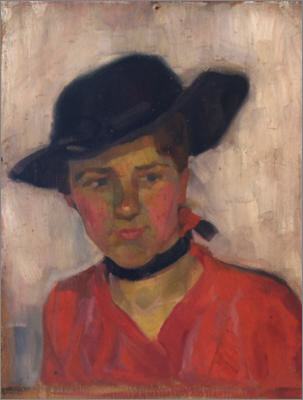 Frau mit schwarzem Hut, Öl auf Karton, 1915