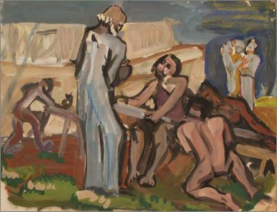 Bau der Arche Noah, Gouache auf Papier, 1916