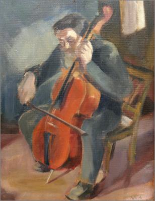 Vater Cello spielend, Öl auf Hartfaser, 1915