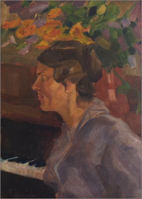 Emmi mit Ohrringen, Öl auf Karton, 1932